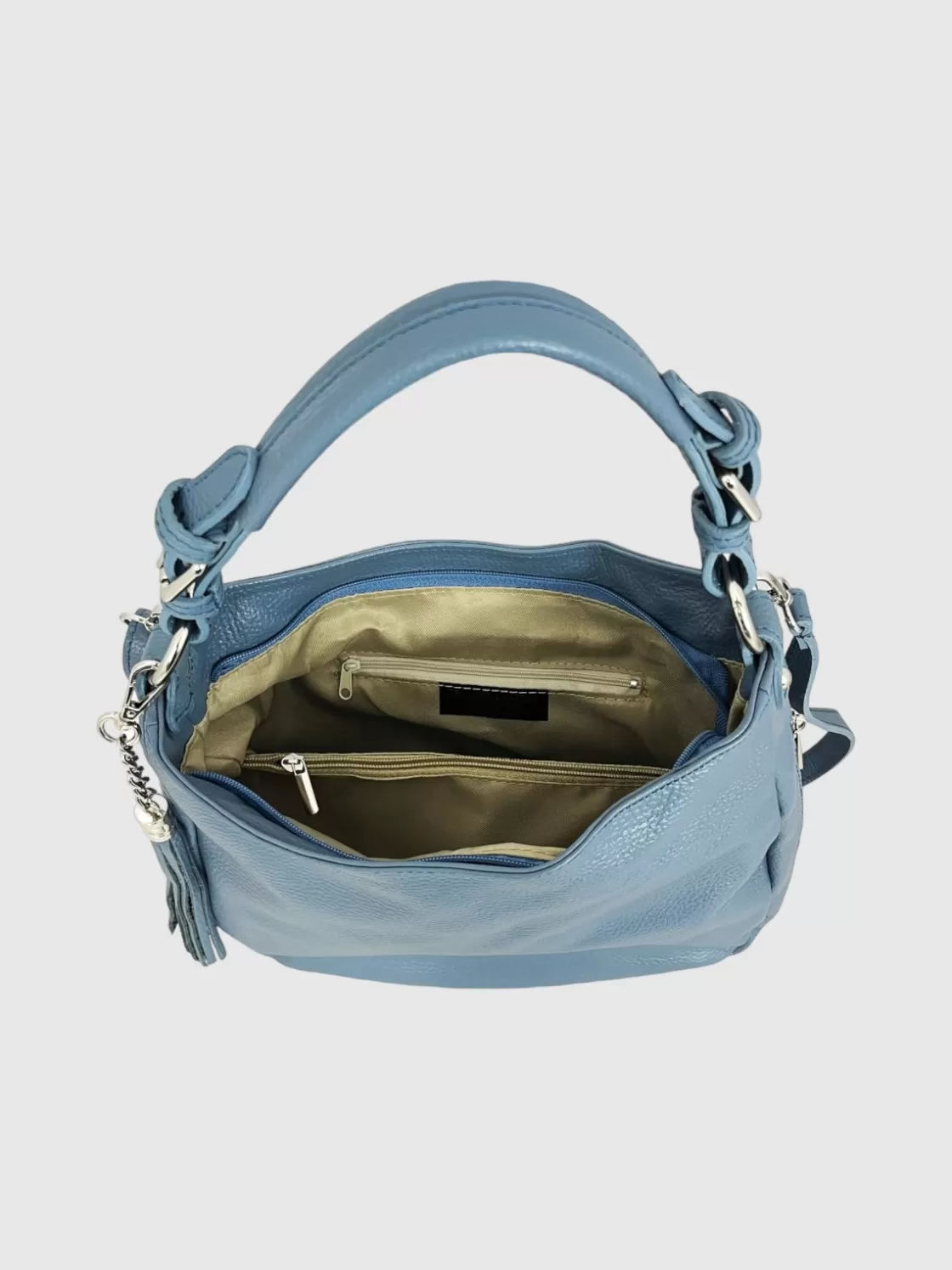 – Bag equipped with carabiner with chain and leather tassel