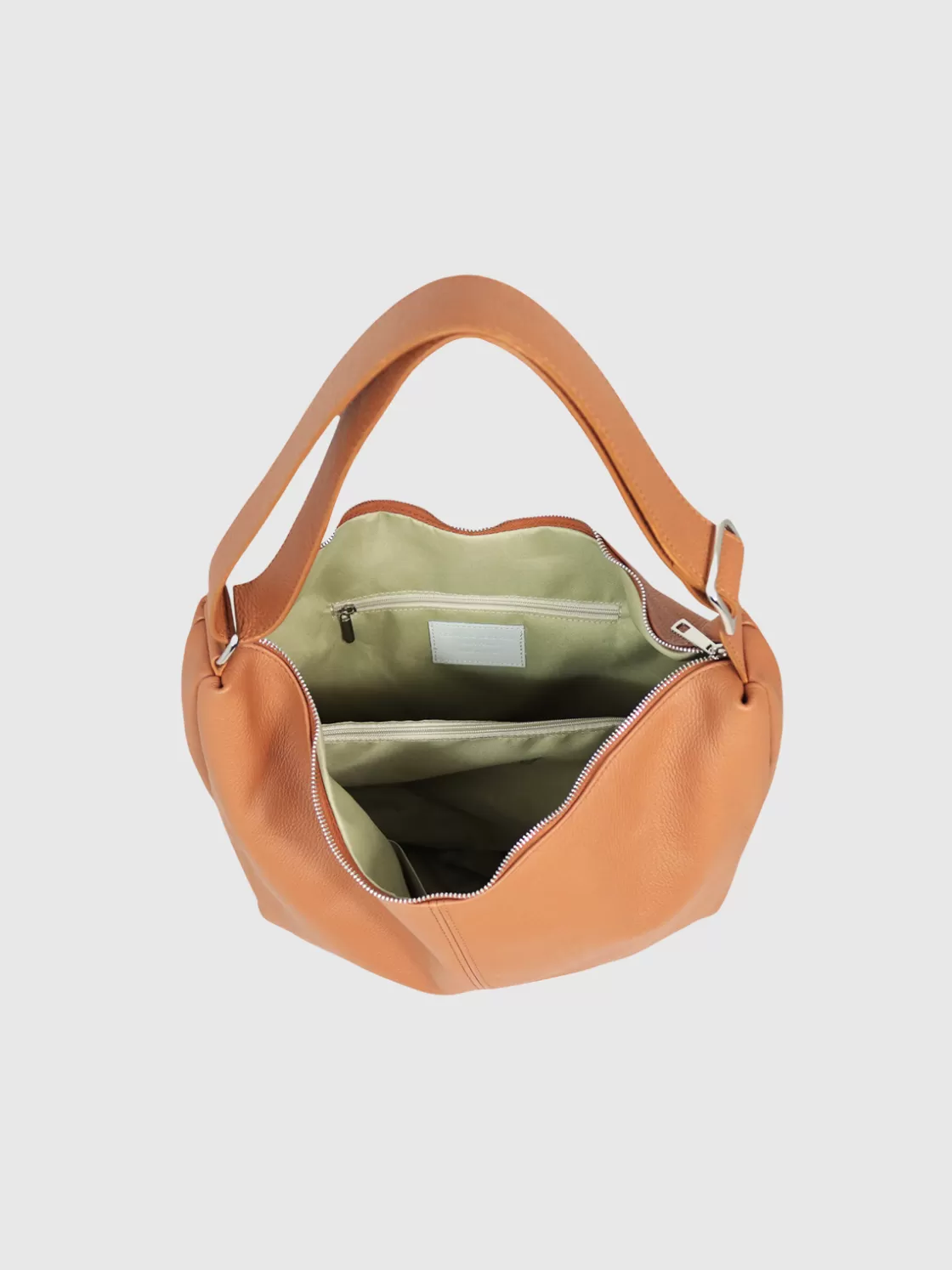 • Bag with three courtesy pockets, two without closure, one with zip closure