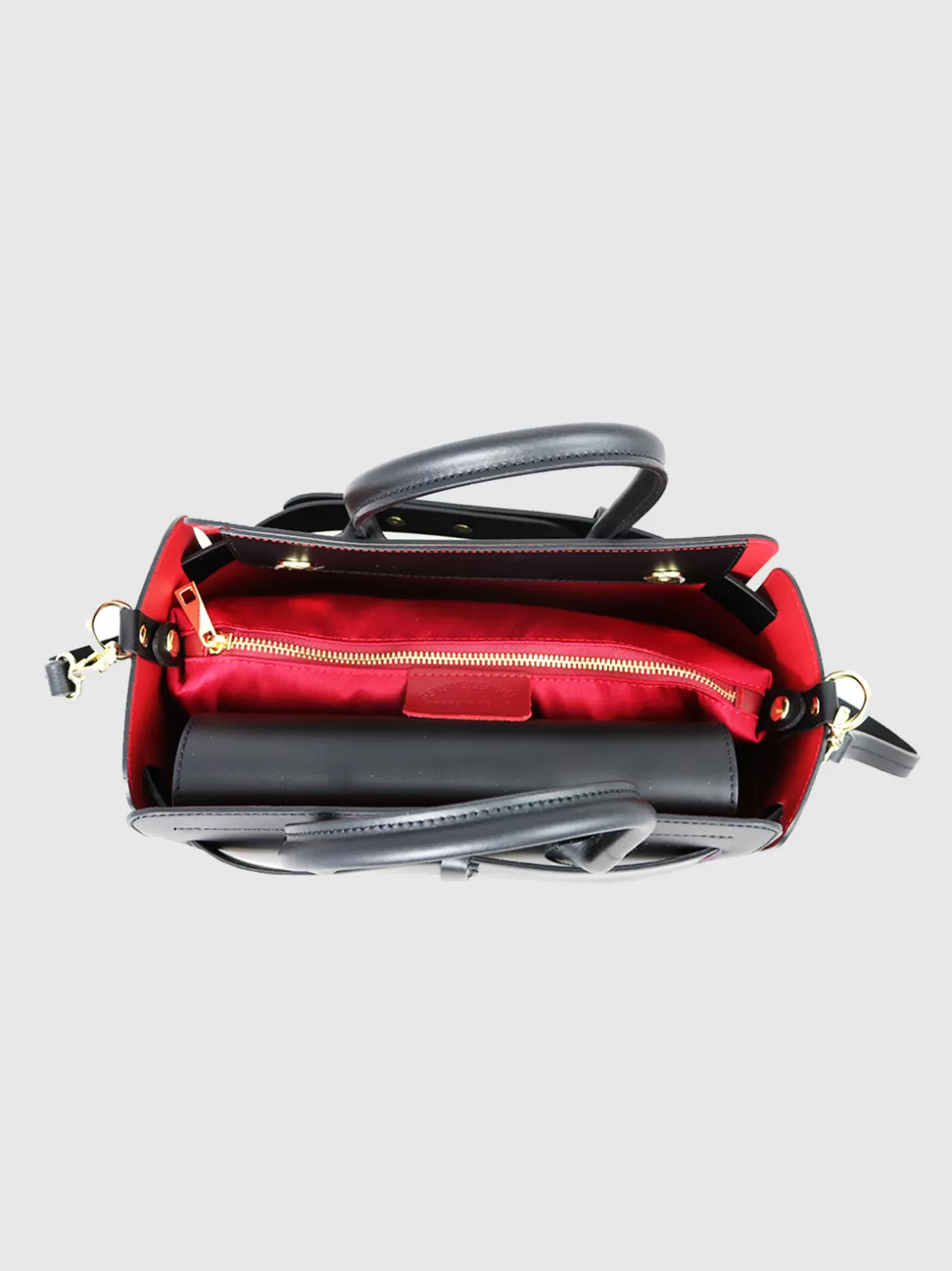 • Inside the central compartment the bag is provided with a removable fabric bag with zip closure