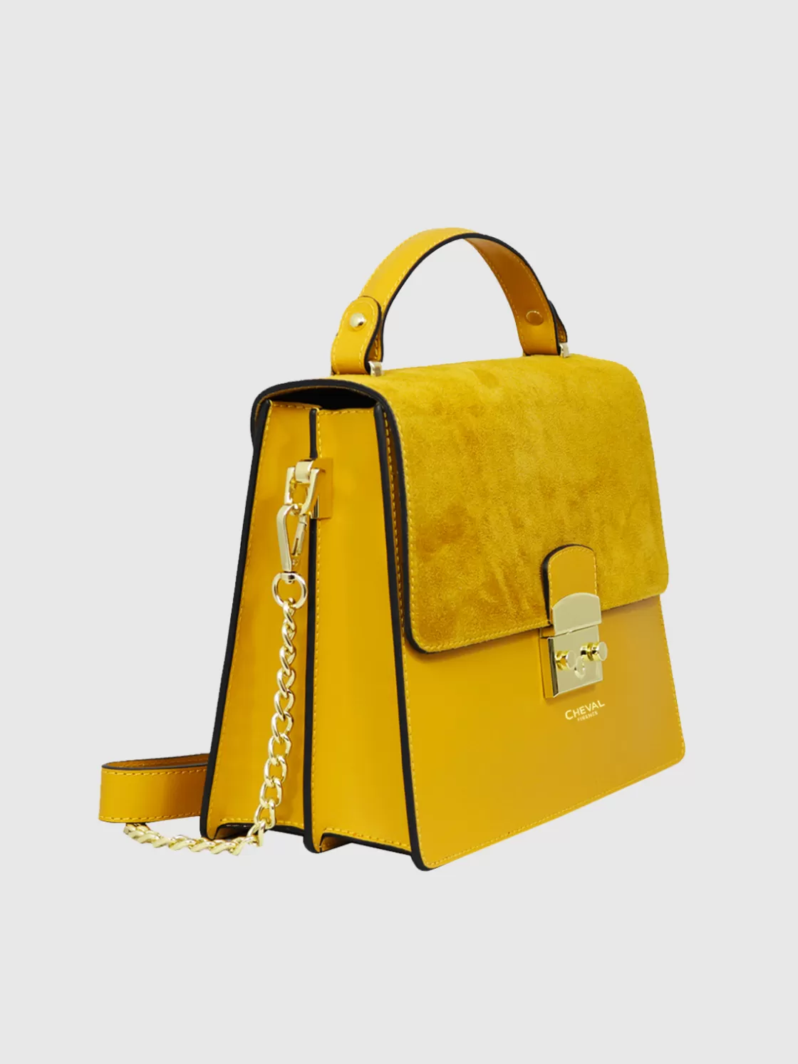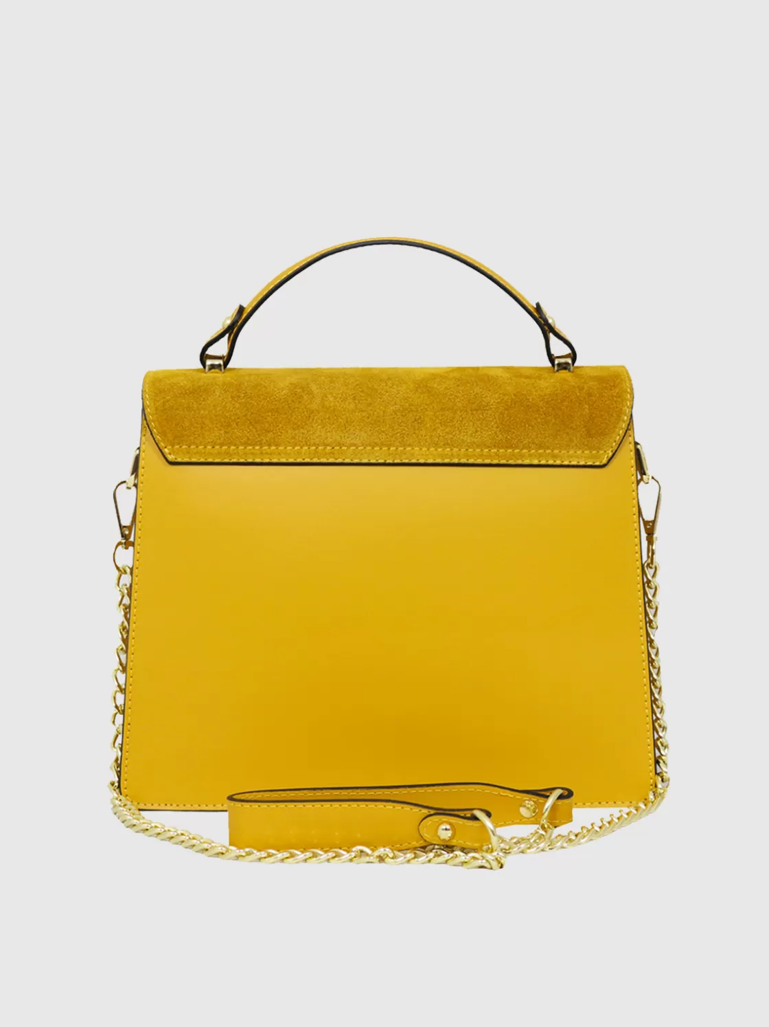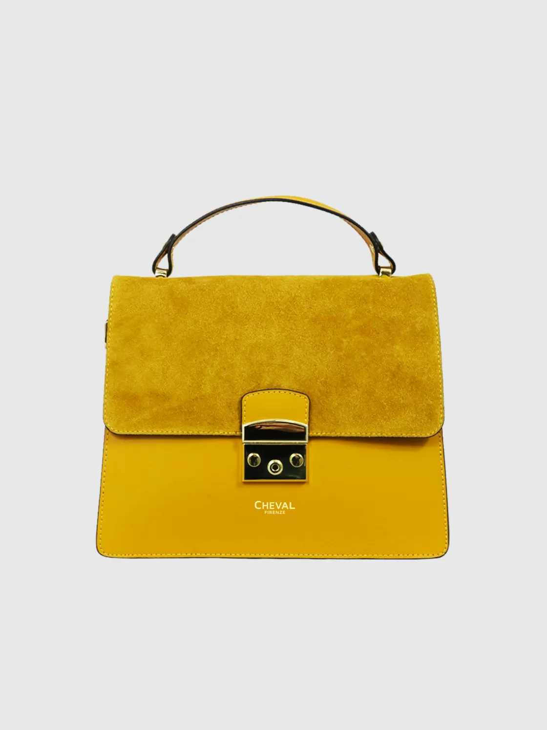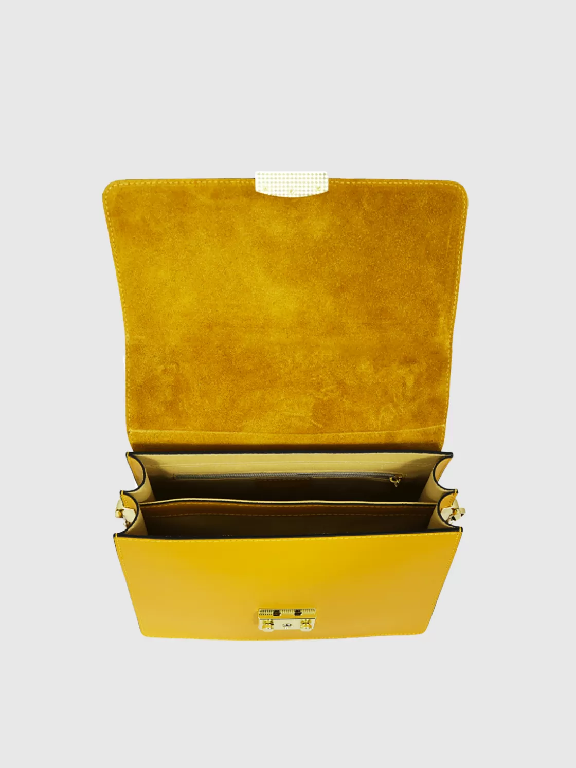 • 2 compartments with flap closure in suede with snap button