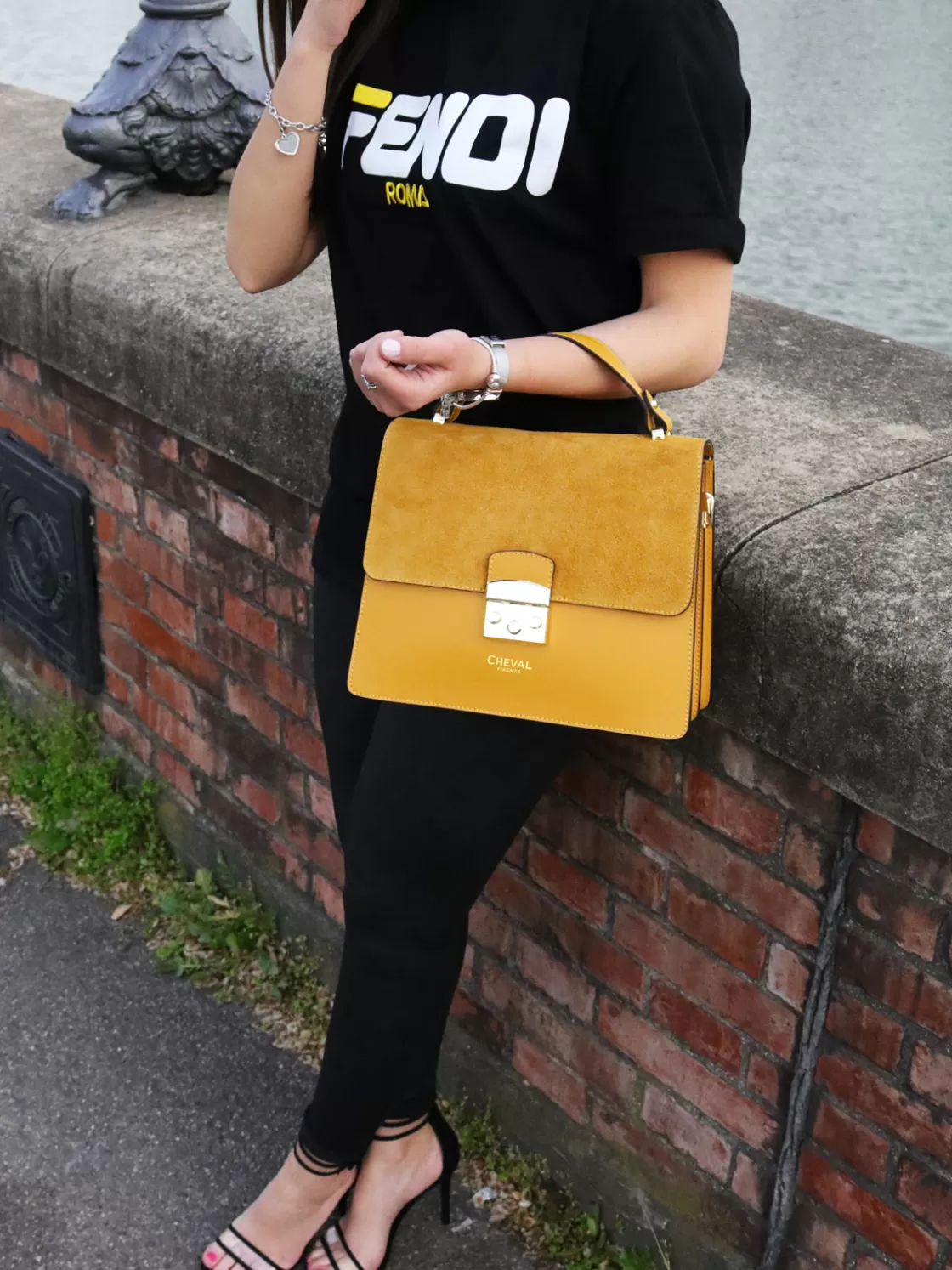 • Leather and chain shoulder strap