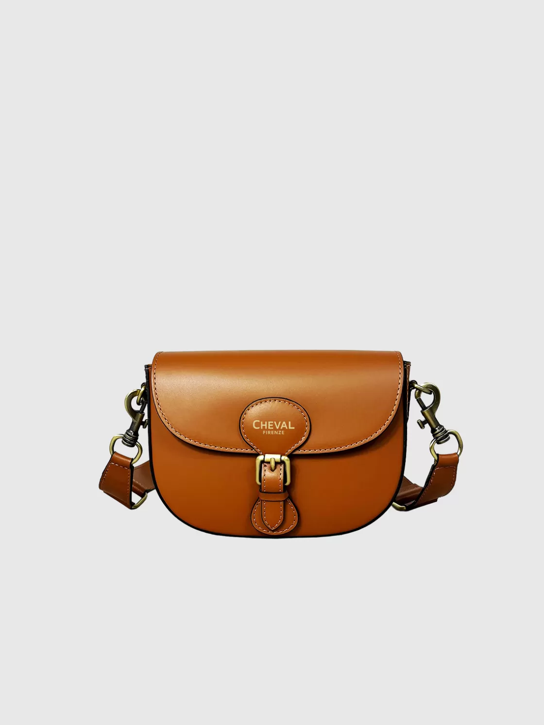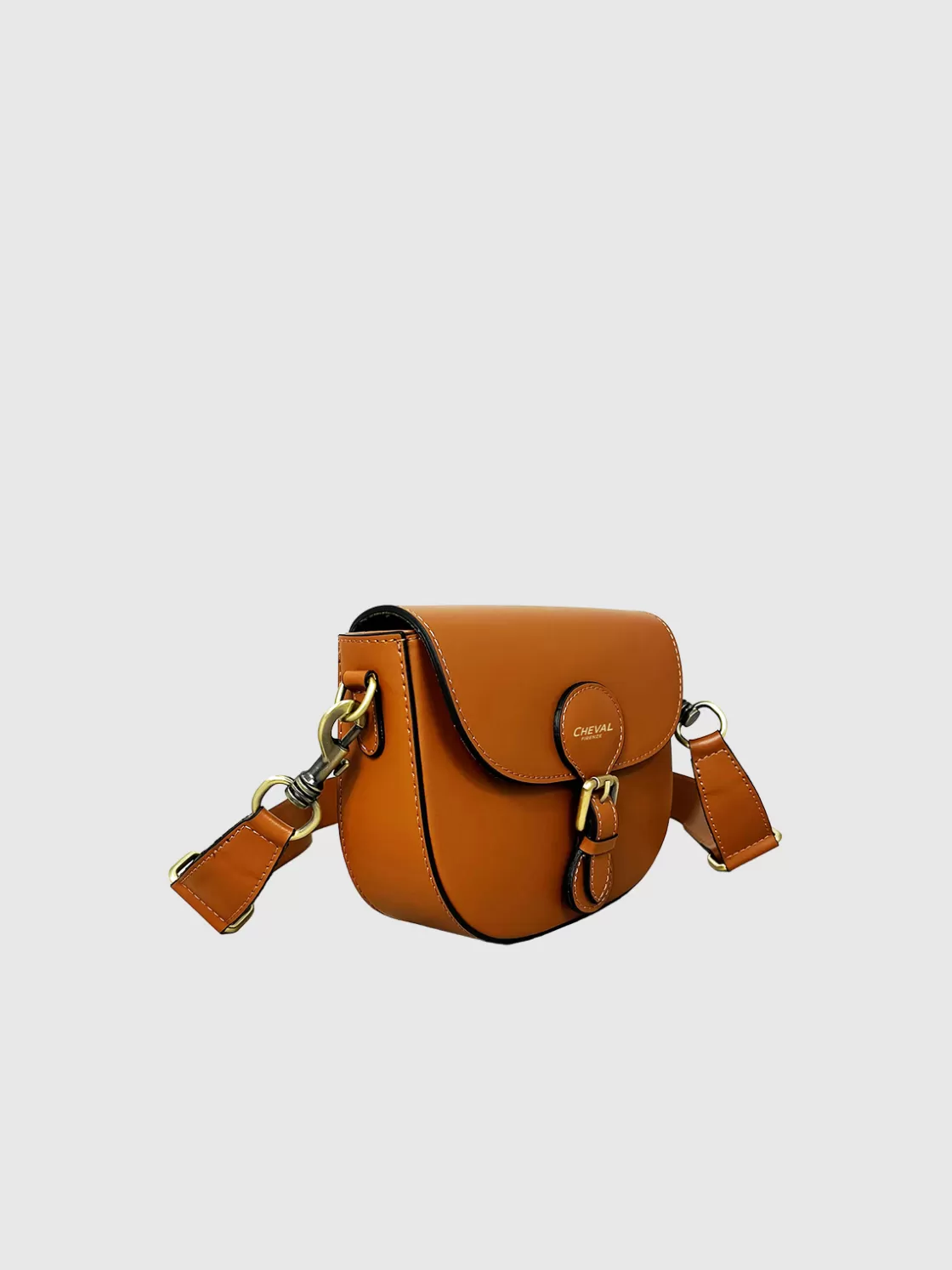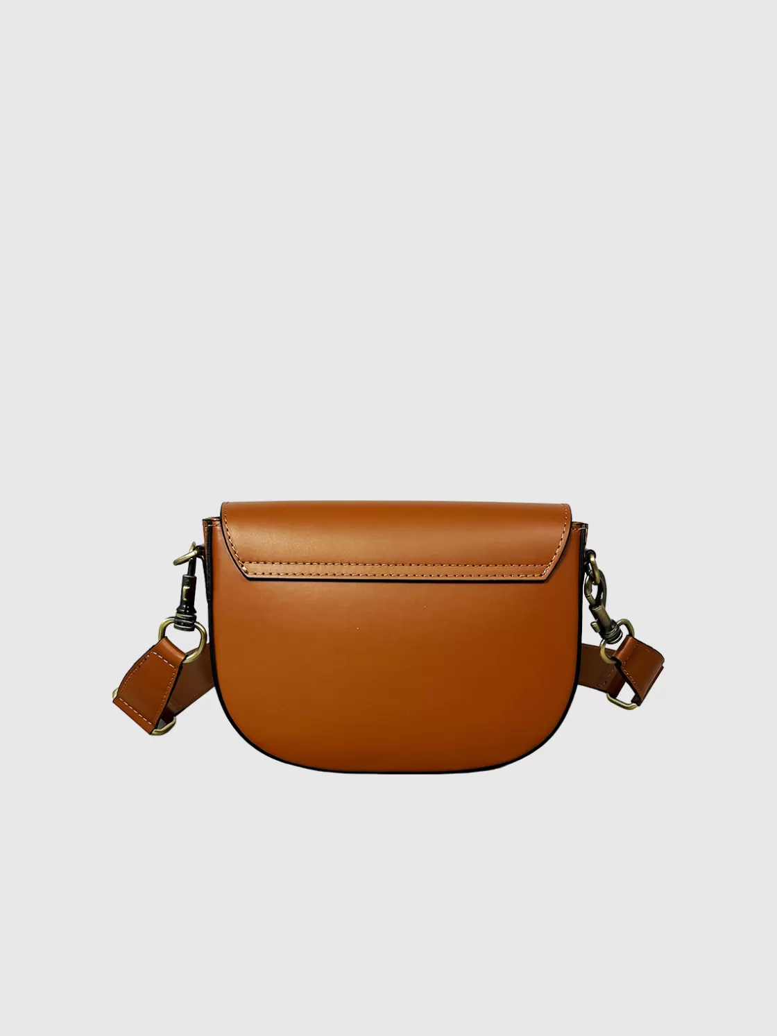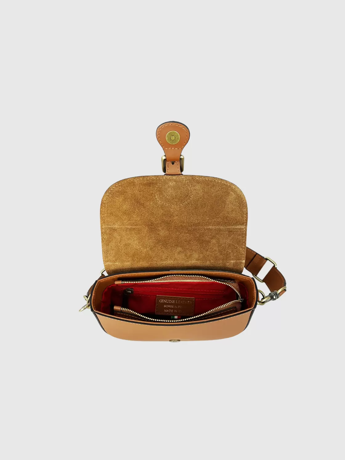 • Leather flap closure with magnetic button